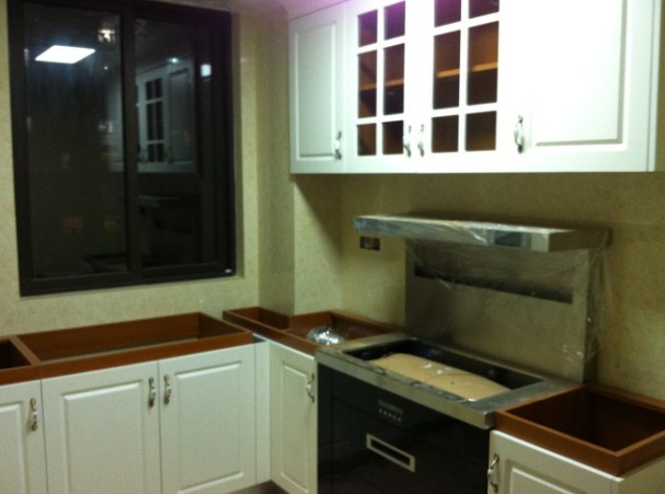 櫥柜柜體和集成灶安裝完成后,開始測量臺面的尺寸,這樣根據現場測量尺寸制作的臺面更加的精確,也減少了誤差,雖然還要再等幾日,但為了最終的效果,還是值得的。