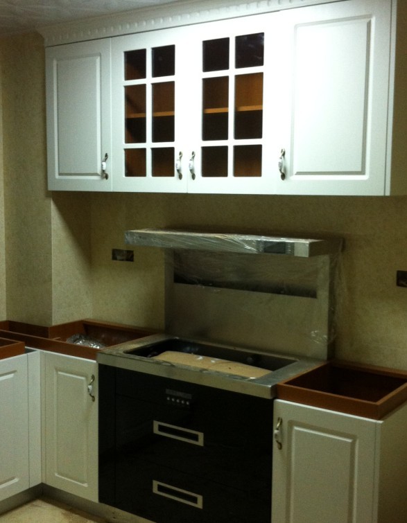 柜體安裝調試完后,將柜門裝上,白色簡歐風已初顯效果了,本來還擔心黑色的機身與白色門板不搭,裝出來后才發(fā)現當初的廚慮完全是多余,黑色讓淺色的廚房空間更顯穩(wěn)重,黑白的搭配更有層次并且形成了廚房小空間的視覺焦點,讓整個廚房色調不至于單調乏味。
